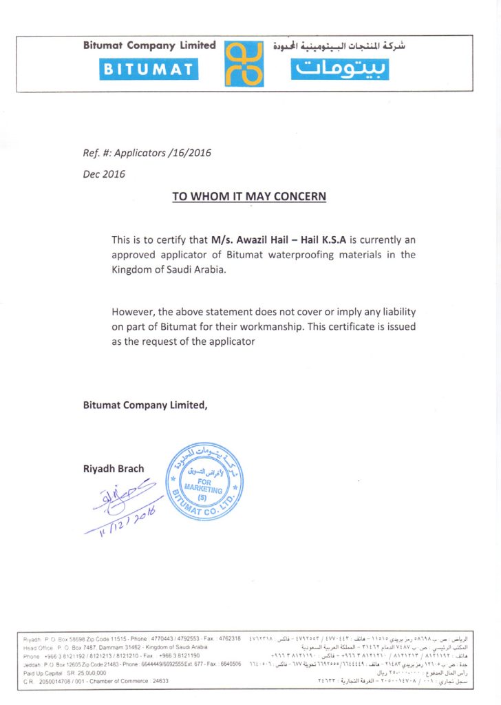 | سطح مستشفي الملك خالد بحائل | شركة الفارس الأبيض | 1600 متر2 |