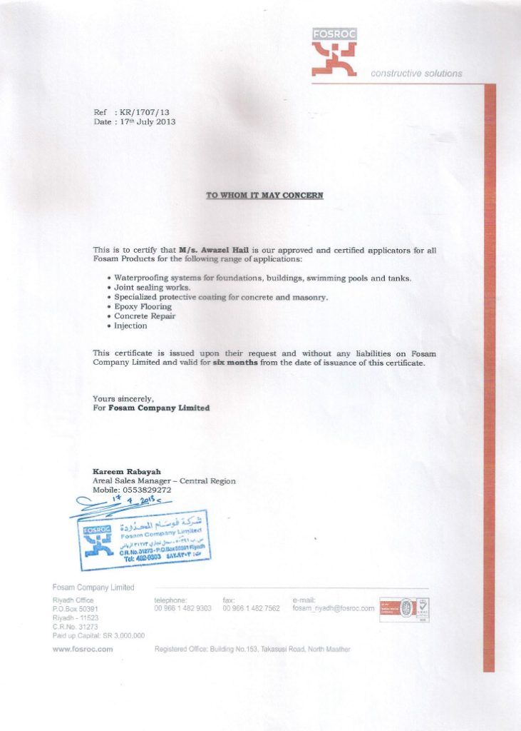 | عزل نادي الهلال في الرياض | شركة عوازل حائل التجارية | 8000 متر2 |